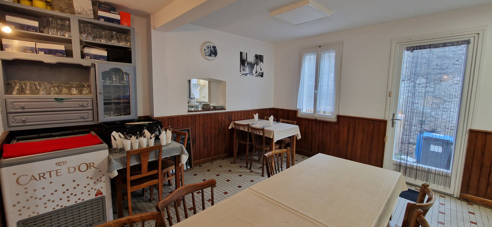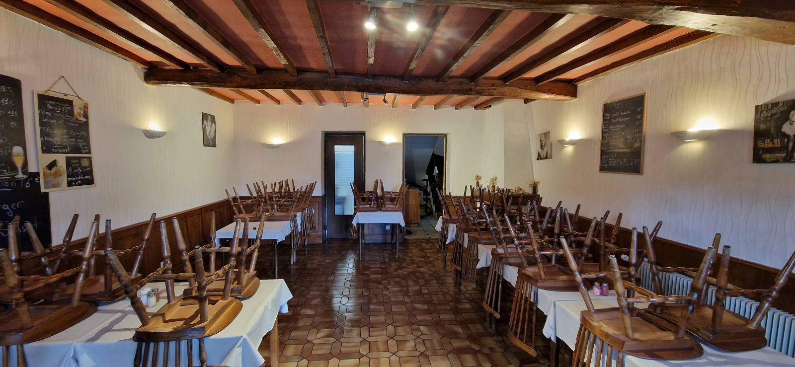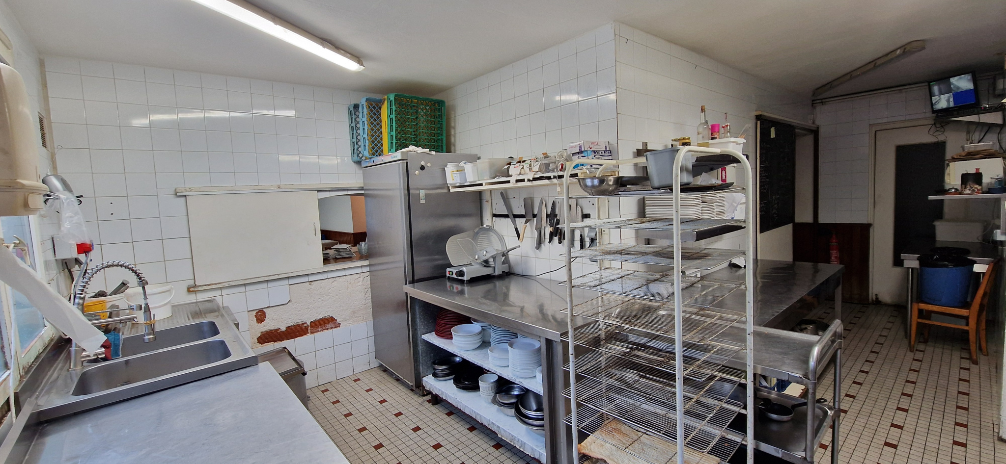 - RDC : bar + 2 salles de restaurant (capacité 60 couverts) + cuisine + grande pièce de stockage avec chambre froide