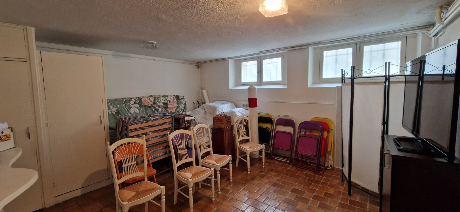 - au 1er étage : d'un appartement T2 de 58 m², lumineux, rénové avec goût, parquets, double vitrage, etc... dont notamment un bel espace de vie de plus de 35 m² et une grande chambre de 15 m².